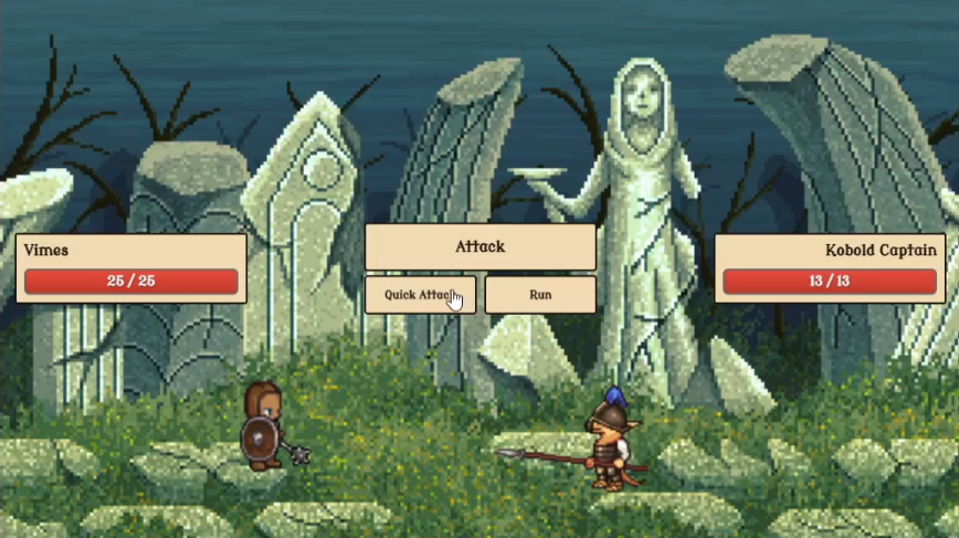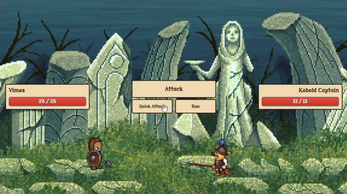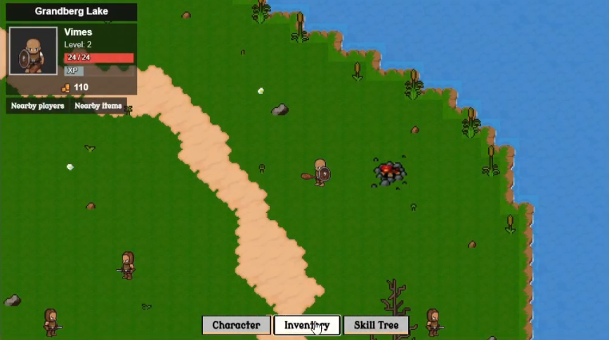 This is a prototype of a 2D pixel art, turn-based combat, multi-user RPG, inspired by an old text-based MUD called Initium. If you want a specific item, you need to kill the enemy that wields it. Enemies are just like player characters; they carry the same items you can and hit just as hard. You can gain an edge by planning your gear to take advantage of each enemy's strengths and weaknesses.